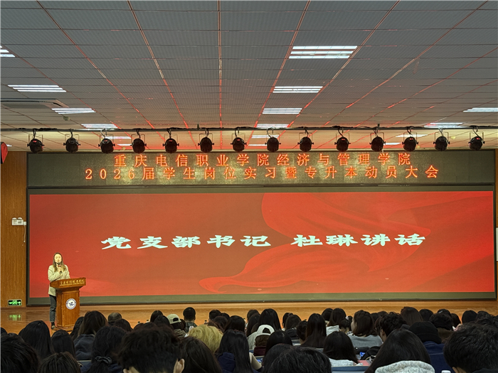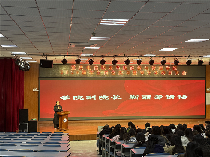 10月29日,经济与管理学院 2026 届学生岗位实习暨专升本动员大会在博学楼第一阶梯教室圆满举行。学院党支部书记杜琳、副院长靳丽芳及全体实习指导教师出席会议,2025 级电子商务专业学生杨凯琳担任主持。