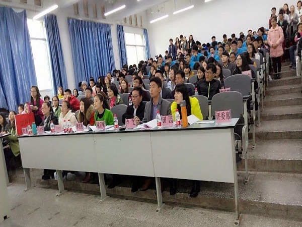 今日,由财会与金融学院承办的我校第五届“青春电信”校园文化艺术节之“金话筒”主持人大赛复赛在卫星湖校区一阶隆重举行。学工部副部长廖良刚老师、学工部综合科科长王向前老师、设计与建筑学院党总支书记向术桃老师及七位评委老师和部分老师及190名学生代表观看了本次大赛。
